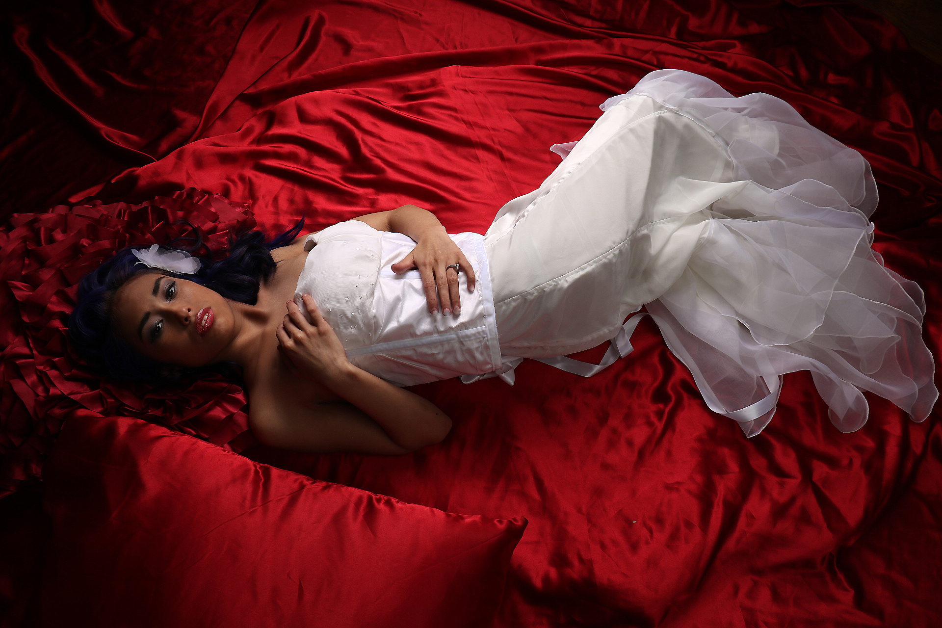 Luscious as supple waves, this silk crepe, satin and organza mermaid skirt is perfect for summer, beach weddings or any romantic affair. The silk crepe provides a gorgeous low sheen in contrast to the satin front panel that is all slinky shine flowing into silk organza tiers that float ethereally around you as you walk down the aisle. Lined in 100% silk habotai, this dress is made from fair trade and sustainable silks, making it eco-friendly as well as utterly gorgeous. The ribbon corset ties in the back add romance as well as making the fit as customizable as possible so that this skirt can hug all your curves!