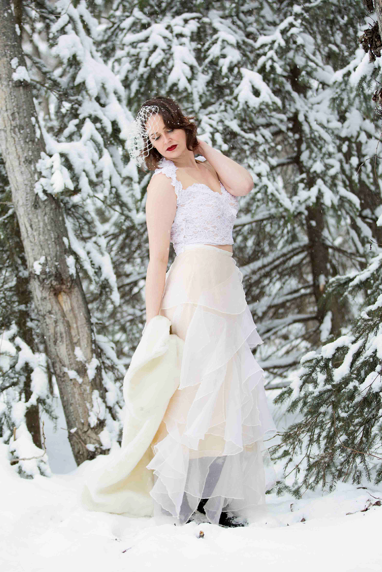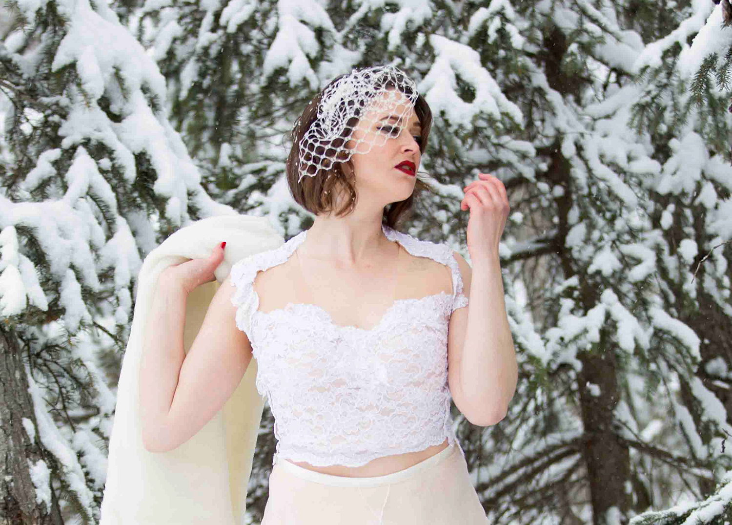 Our Destina lace and illusion bridal top is romantic and modern with the softest illusion netting underneath topped with Alencon lace and hand beading. The top is secured in the back by a row of pearl buttons giving the illusion of the lace and pearls suspended in air. The top has underwire and boning for support and comfort.