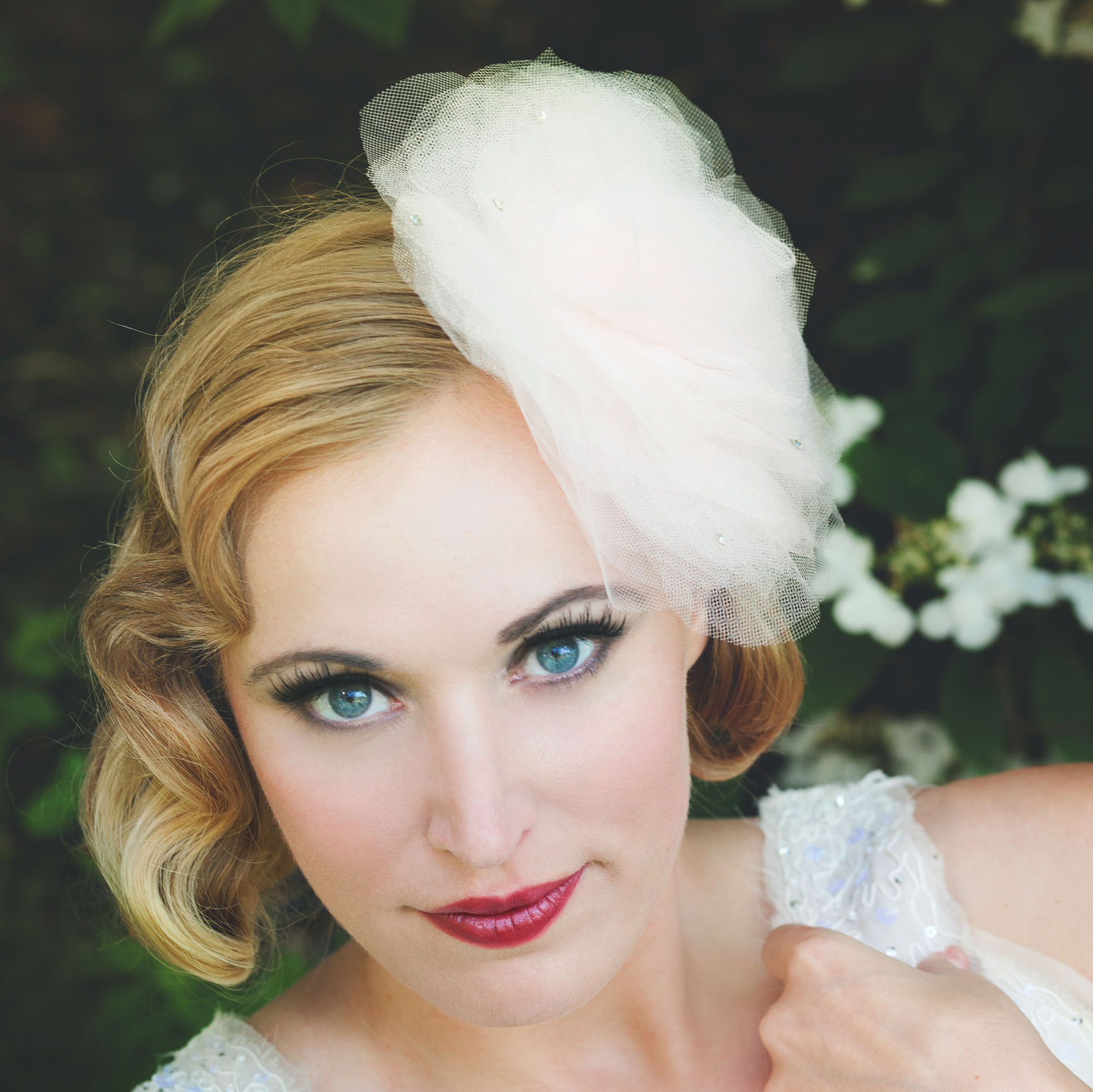 This stunning floral headpiece is made from dozens of layers of matte and shimmer tulle handout and sewn to perfection. The petals are scattered with Swarovski crystals for a dew effect.