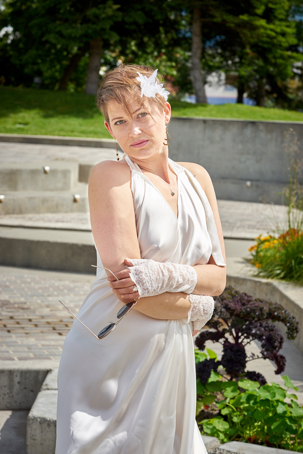Our Rina gown is made from flowing, fair-trade silk satin and feels like a dream. The handkerchief hem is perfectly bohemian and embellished with hand-beading at the corners for sparkle. Ties at the neck, across the front for an unusual detail and forms into a V at the very low back. Perfect for a beach or informal wedding. The open-flowing nature of the gown from top to bottom makes for an almost one-size-fits-all fit and hangs on your every curve.