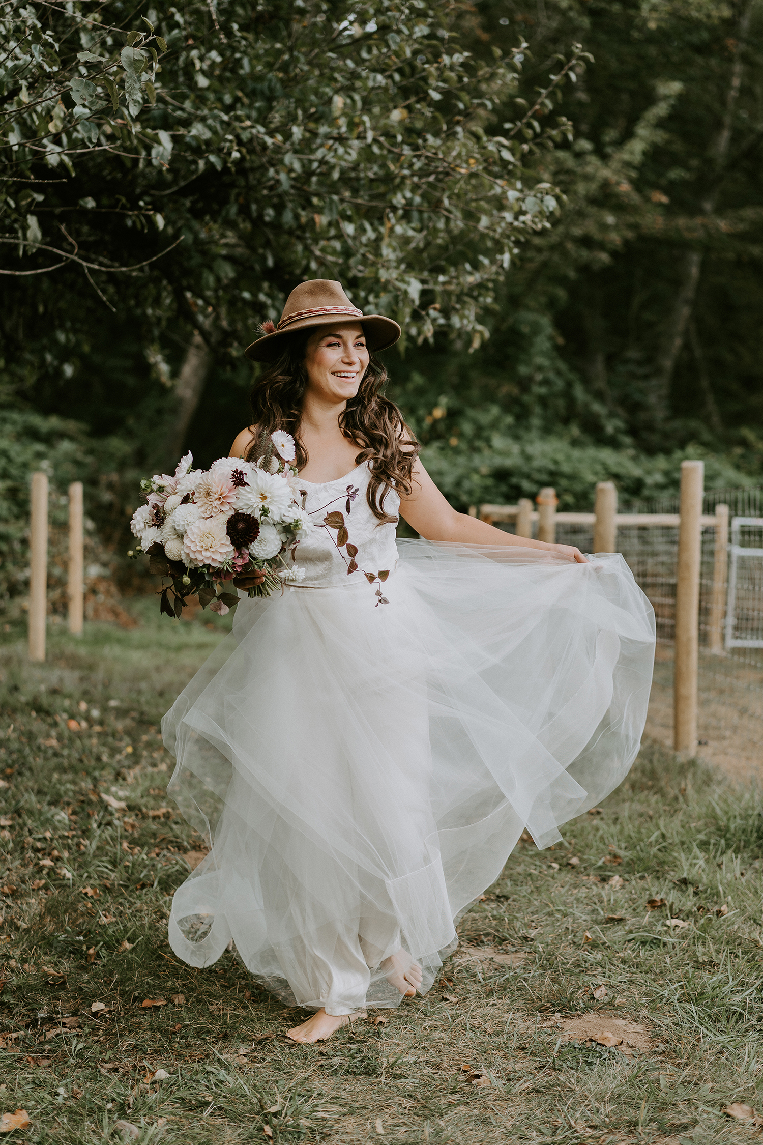 Our Natalie tulle over-skirt is made of premium bridal illusion tulle and edged with 8" horsehair trim for structure and style. Wrap-around style is easy to wear and the opening disappears over bridal separates or gowns so that it looks as though it is all one continuous piece. Attached with snaps for ease, it makes a perfect detachable chapel-length train.