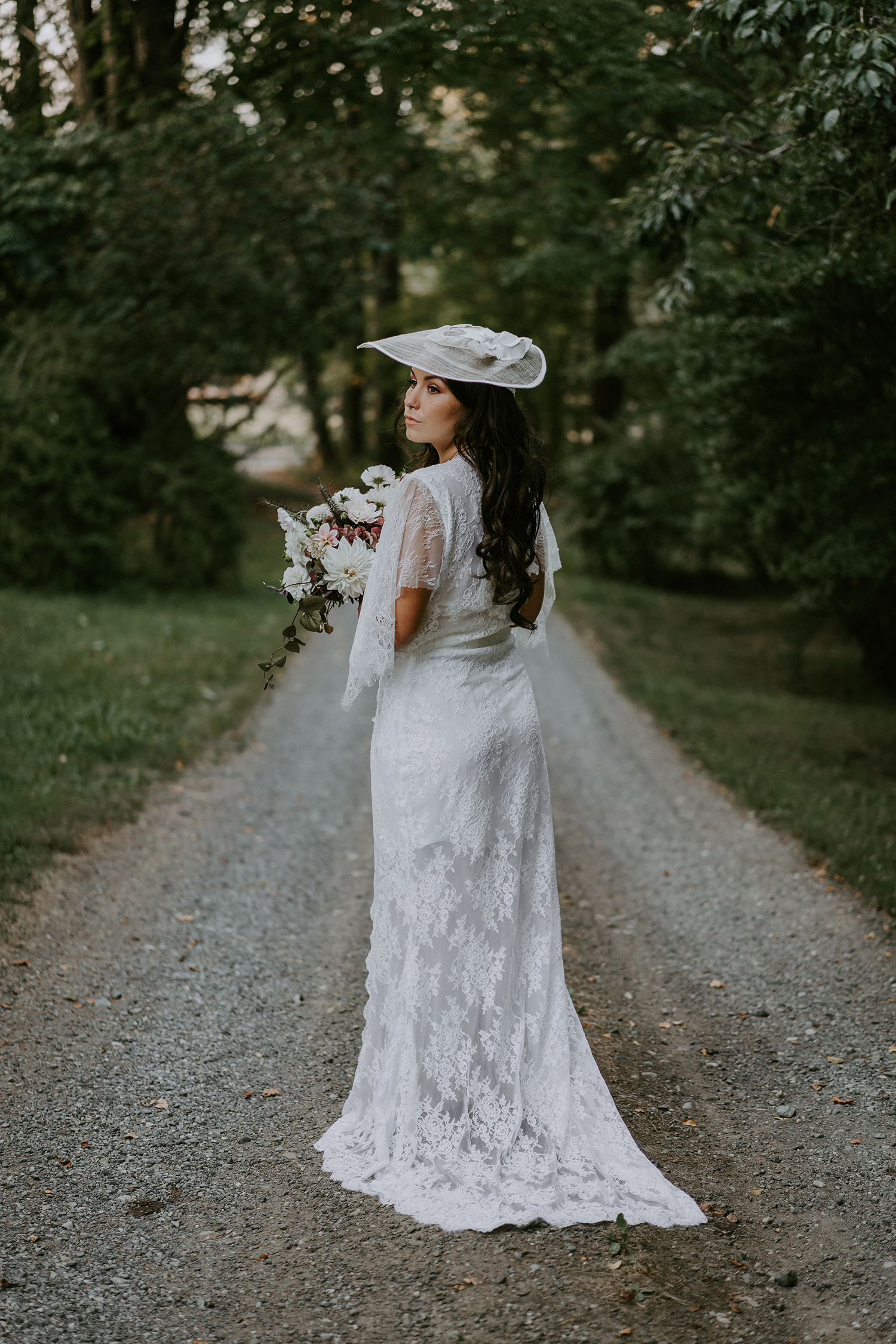 Lace, lace and more lace. Our stunning Simone Lace Wedding Dress is all sumptuous Chantilly lace with hand-cut lace appliques, beading, lace flowers and Alencon lace trim. Lace 3/4 length flutter sleeves and a chapel-length train make this dress as romantic as possible.