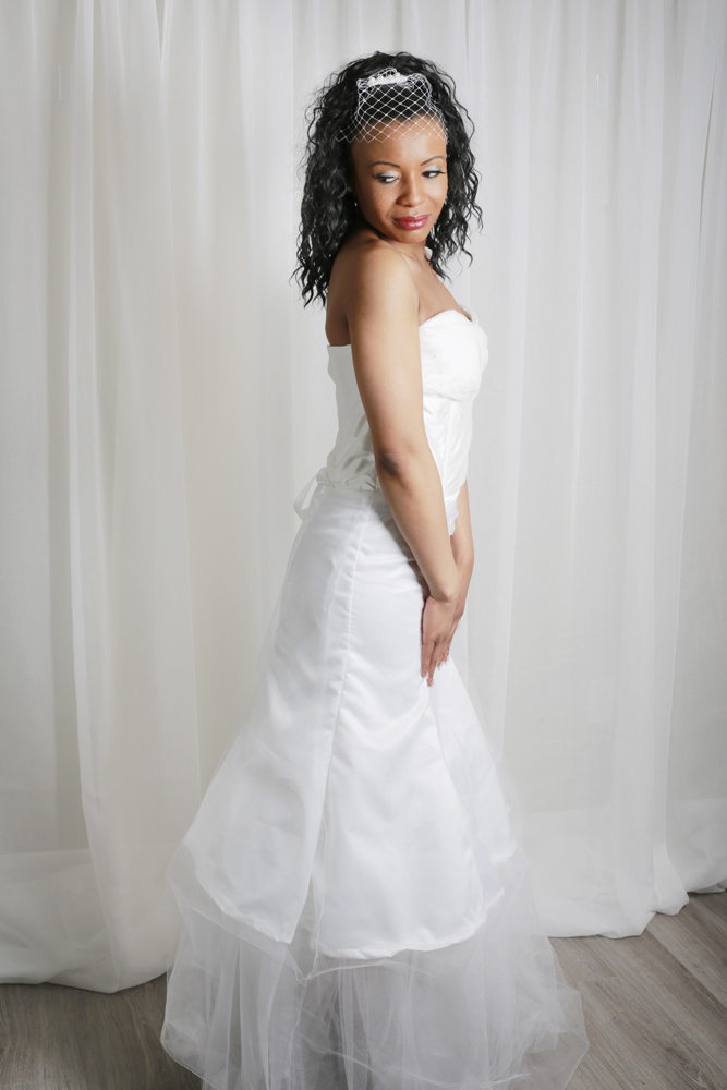 Part of our bridal separates collection, this top goes beautifully with our satin and tulle fit-and-flare skirt (shown), our tulle ball gown skirt or our silk crepe and organza mermaid skirt.