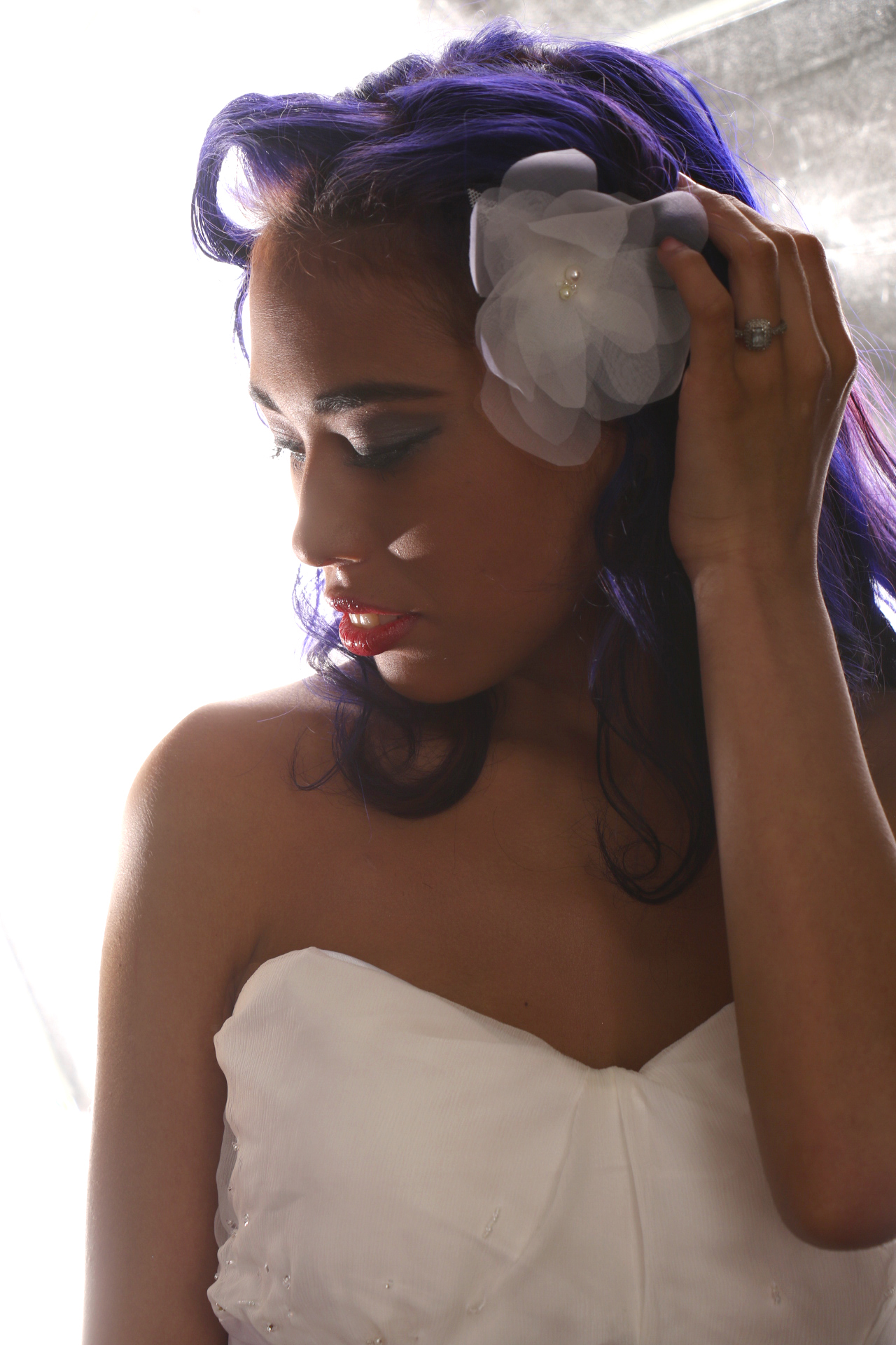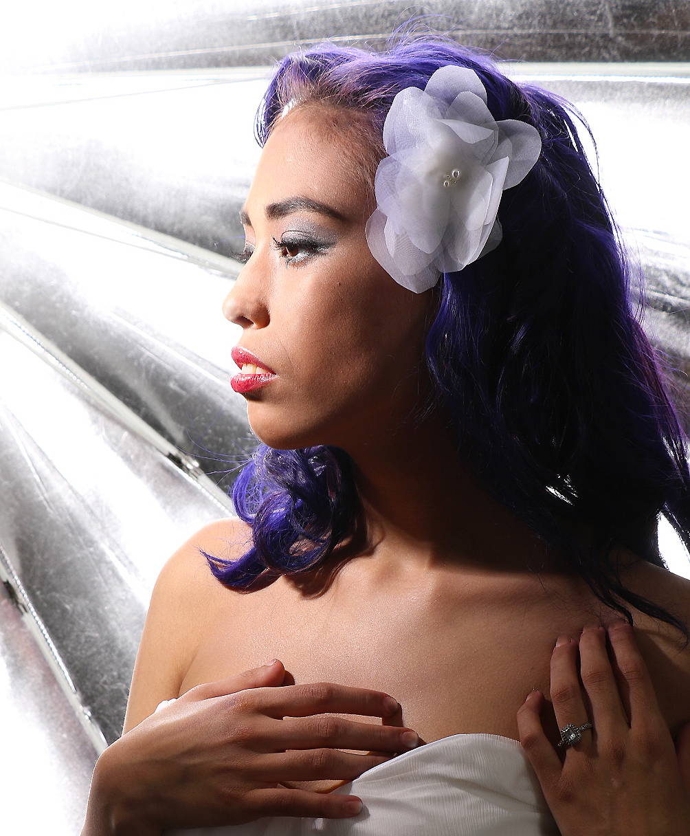 Delicate and lovely, this silk organza hair flower is the perfect finishing touch for your wedding day look. Adorned with pearl bead centers and backed with fine Alencon lace, this tropical-inspired flower works beautifully for a vintage and rustic-style wedding as well as a beach affair.