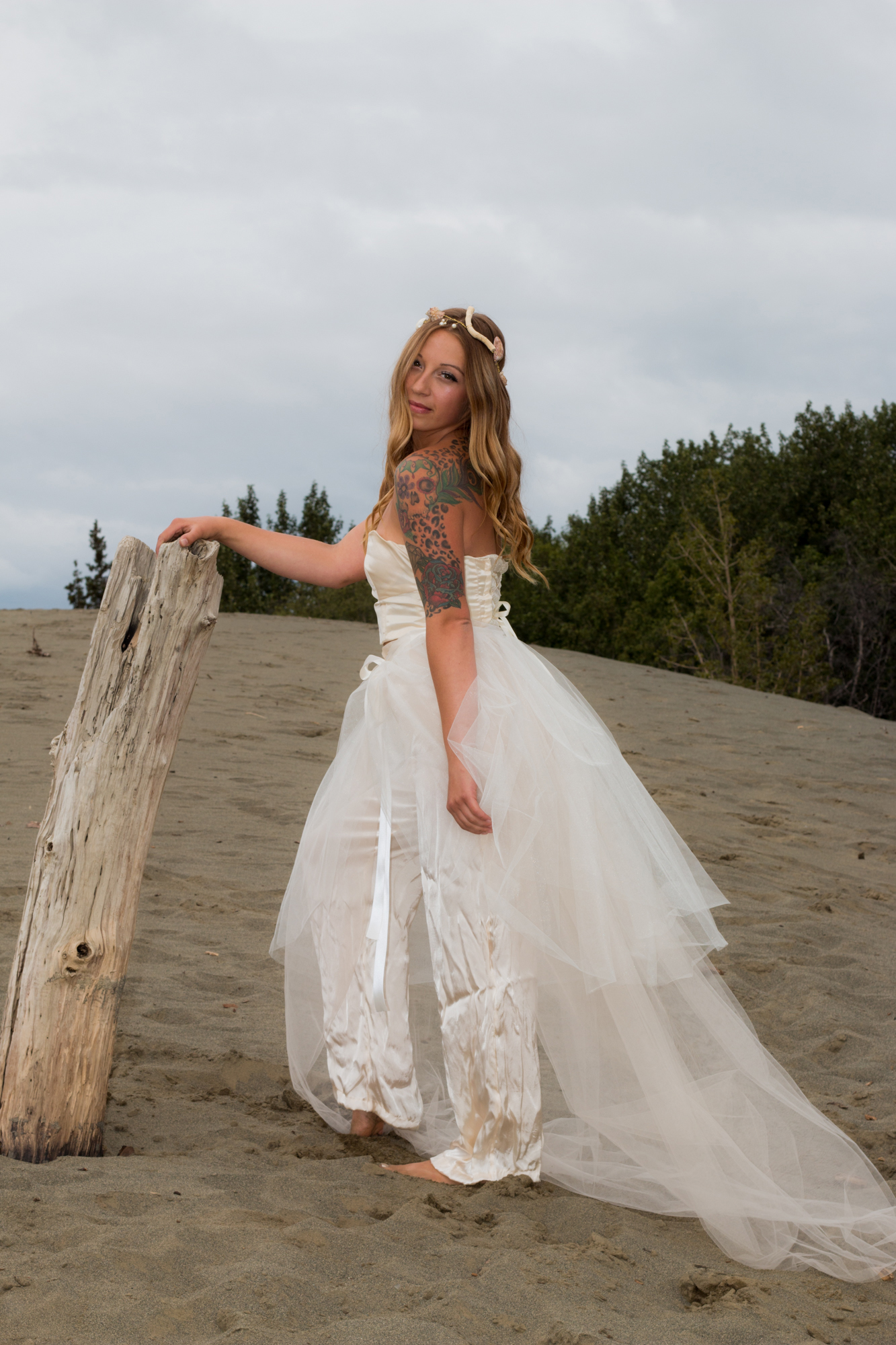 Our "Olivia" tulle overskirt is made of premium bridal illusion, matte and shimmer tulle and the perfect topper to fill out princess skirts or make a short skirt more formal. The layers of tulle billow wonderfully for a princess feel and modern look. All our tulle skirts have shimmering tulle at the top for added sparkle that looks amazing in photos. The longest length leaves a wispy layer of tulle at the bottom to let your shoes peek through and a chapel-length train that trails behind you.