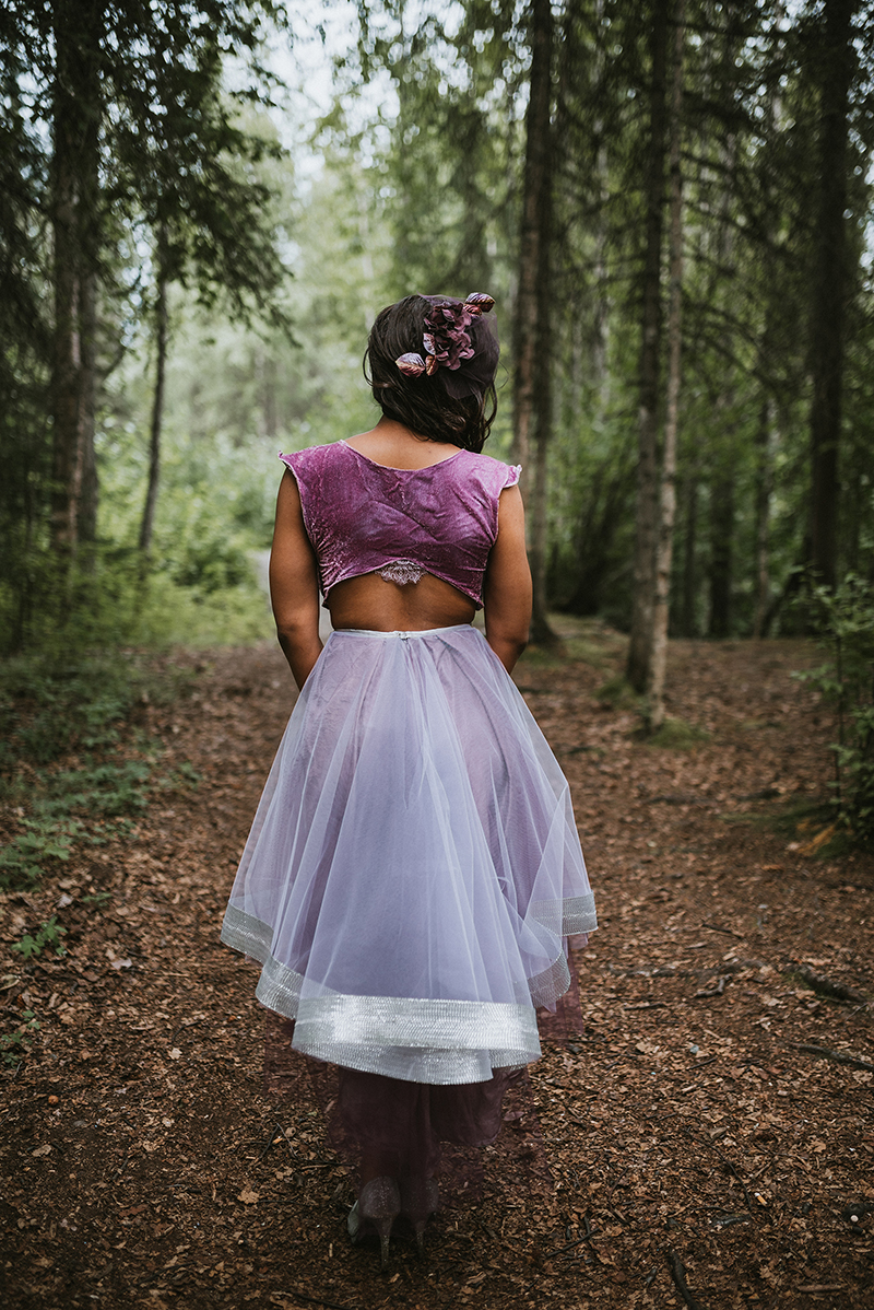 Beautiful hand-dyed silk velvet crop top with French Chantilly lace accents and unique button closures. The supple texture of the velvet and the delicate lace feel wonderfully enchanting. Perfect for evening, bridal, bridesmaids, nights out or anytime.